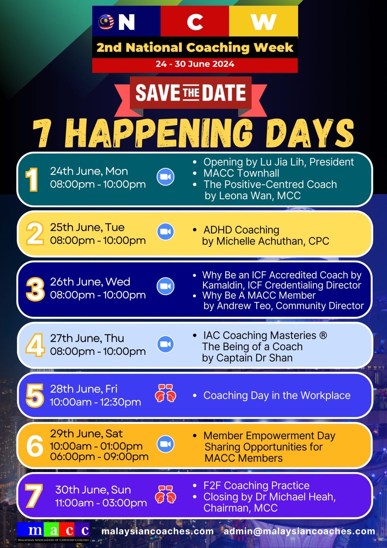 Organized by the Malaysian Association of Certified Coaches (MACC), the NCW is a week-long event which provides a unique opportunity to network, learn, and share ideas.